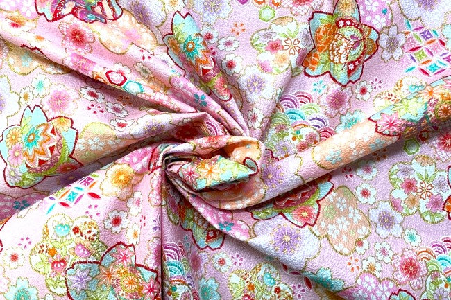 桜の紋様と亀甲紋様の伝統紋様華やかさが、