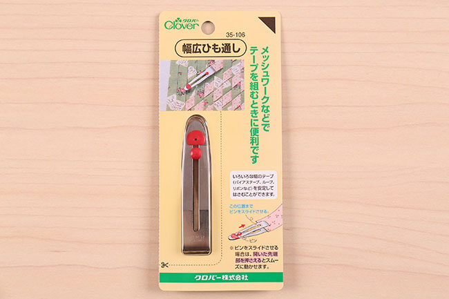 メッシュワークなどでテープを組むときに便利な幅広のひも通しです。