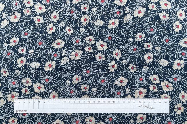 ムラ糸藍染調プリント(椿)[F4-kp7090-55]