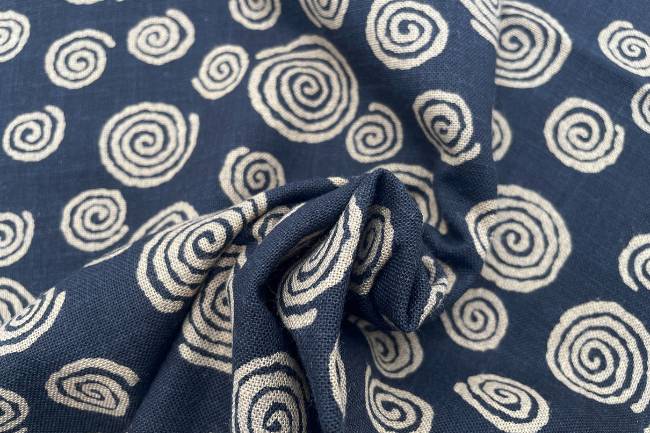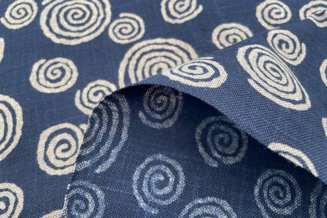 ムラ糸藍染調プリント(渦巻き)[F4-kp7090-43]