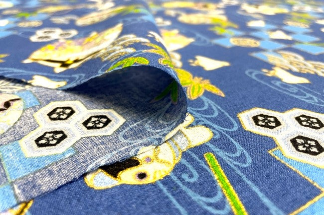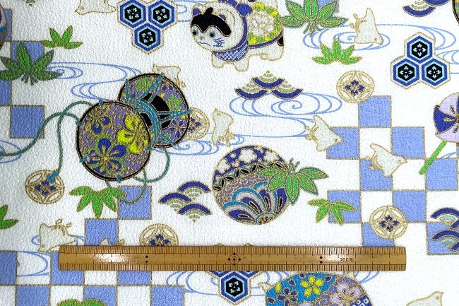 魔除けとも言われる狛犬と市松、青海波、流水、笹、千鳥など