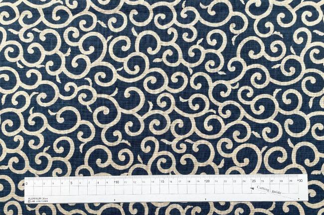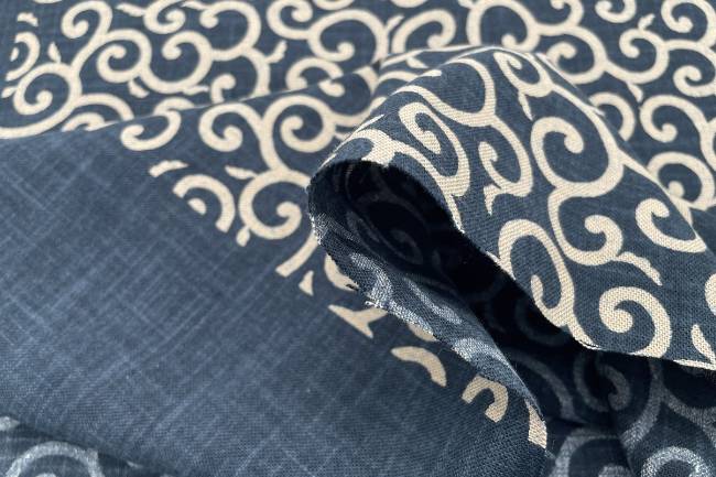 ムラ糸藍染調プリント(唐草)[F4-kp7090-76]