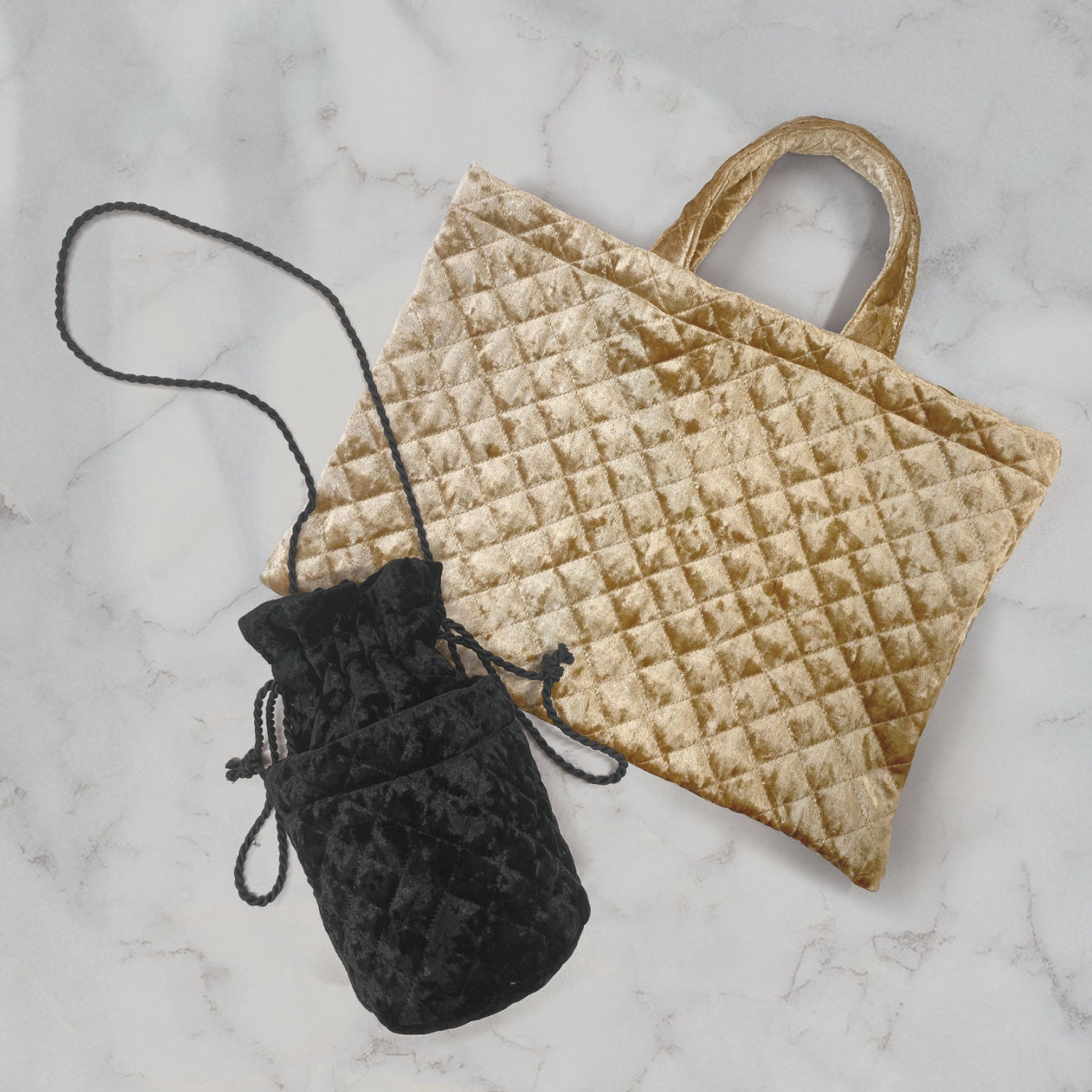 輝くベロア素材にダイヤ形ステッチが施されたノーブルなキルティング生地です。