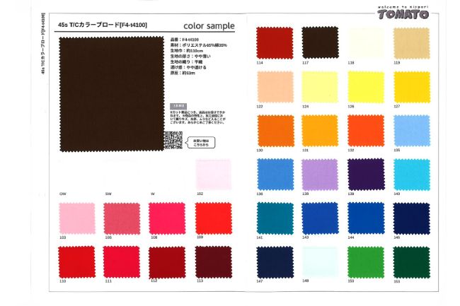 【サンプル帳】45s T/Cカラーブロード[F4-t4100smp]