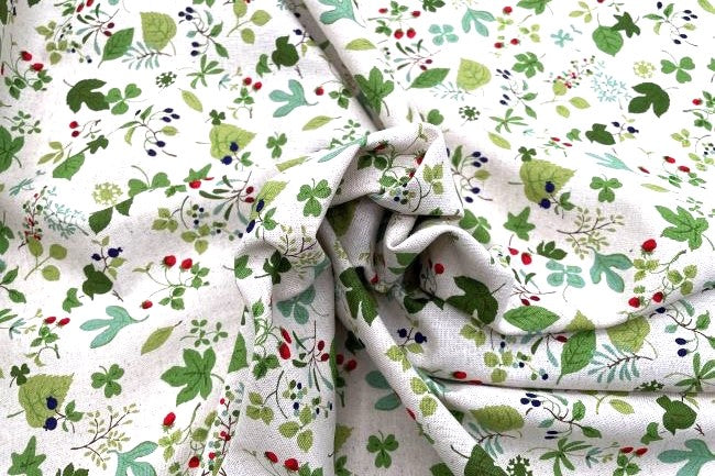 ハーブ柄の綿麻キャンバス生地です。