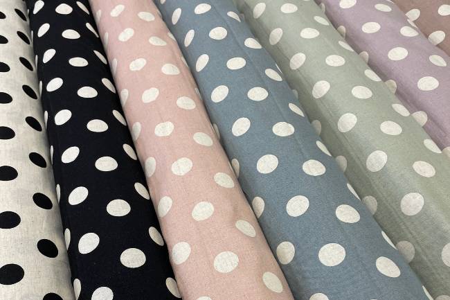 綿麻シーチングプリント(水玉柄)[F1-kts7063]