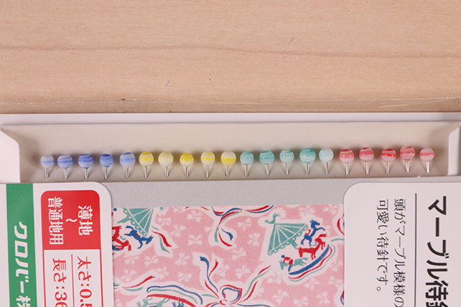 頭がマーブル模様の可愛い待針です。