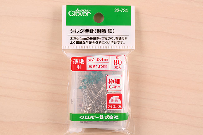 布通りがよく繊細な生地も傷めにくい極細の待針です。