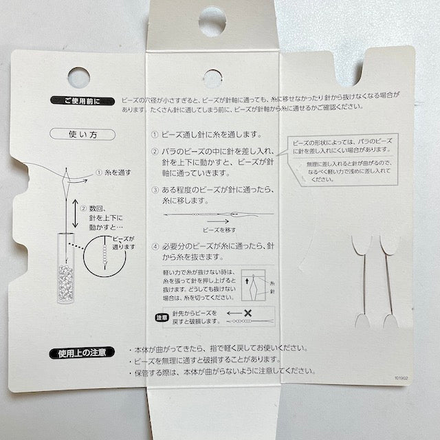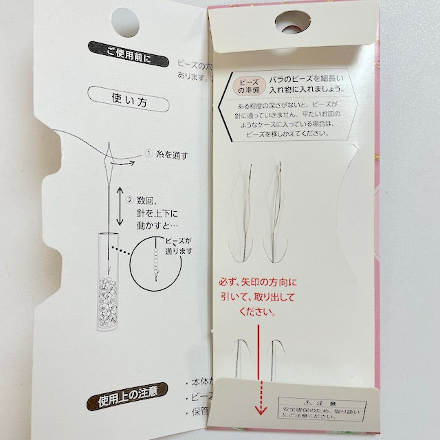 上下に動かすだけで簡単にビーズが針に通ります。