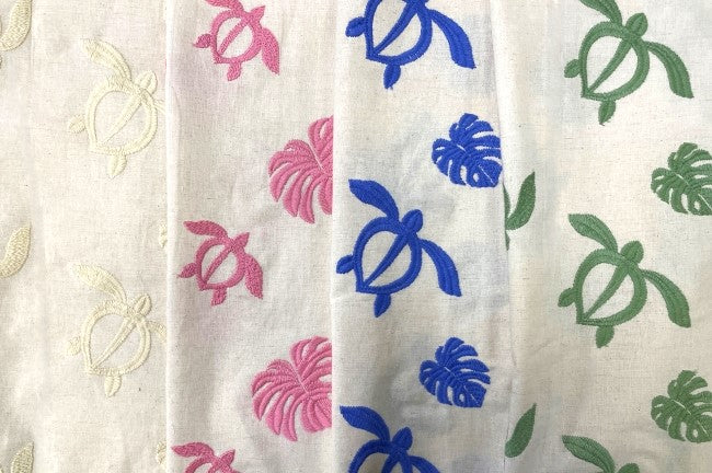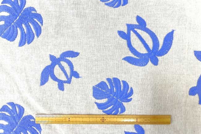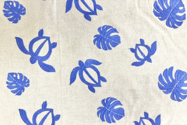 TOMATOオリジナル 綿麻シーチング刺繍 海がめとモンステラ[F1-K53071]