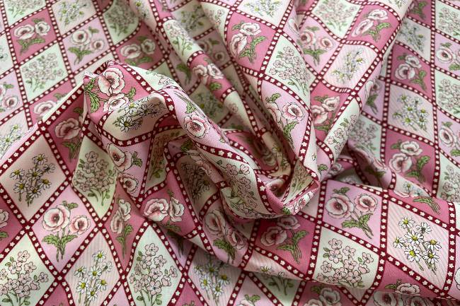 ブロードプリント(ひし形格子の花柄)[F4-kts7044]
