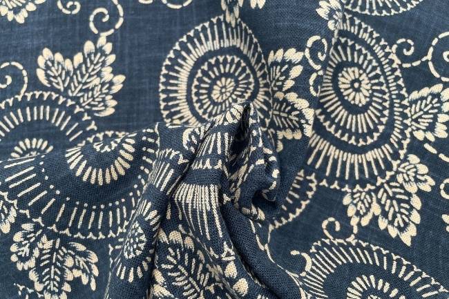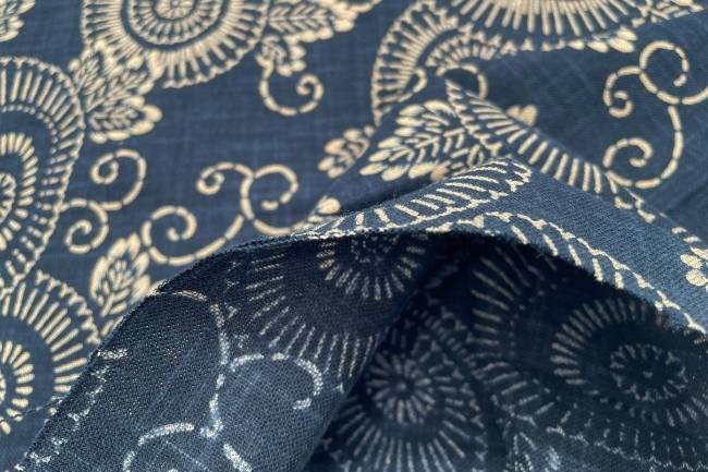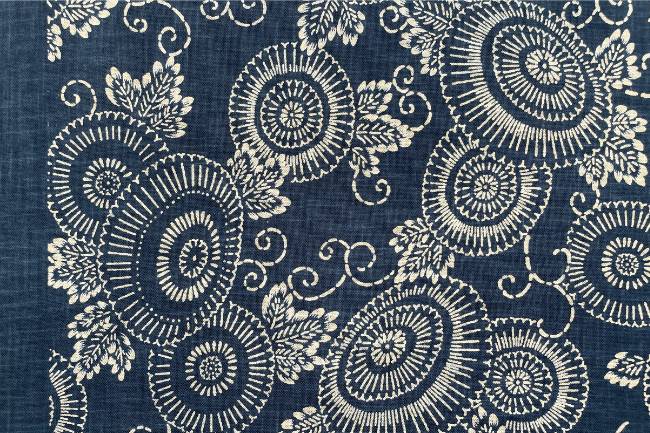 ムラ糸藍染調プリント(傘菊柄)[F4-kp7090-8]