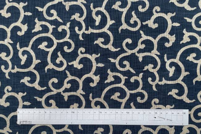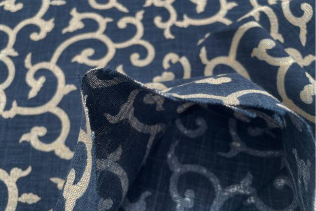 ムラ糸藍染調プリント(唐草大)[F4-kp7090-17]