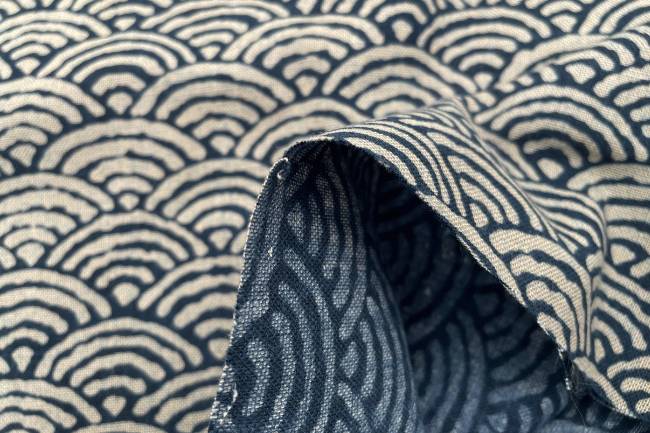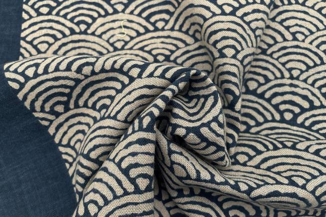 ムラ糸藍染調プリント(青海波)[F4-kp7090-4]