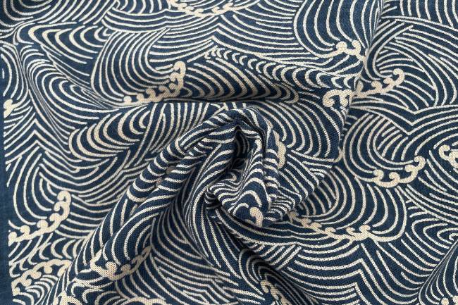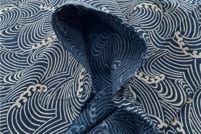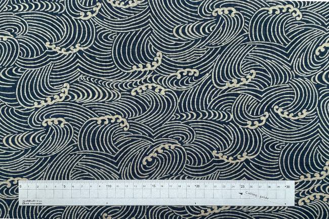 ムラ糸藍染調プリント(荒波)[F4-kp7090-130]