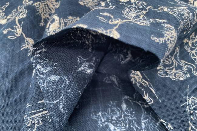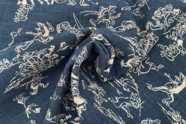 ムラ糸藍染調プリント(鳥獣戯画)[F4-kp7090-129]