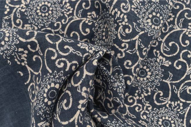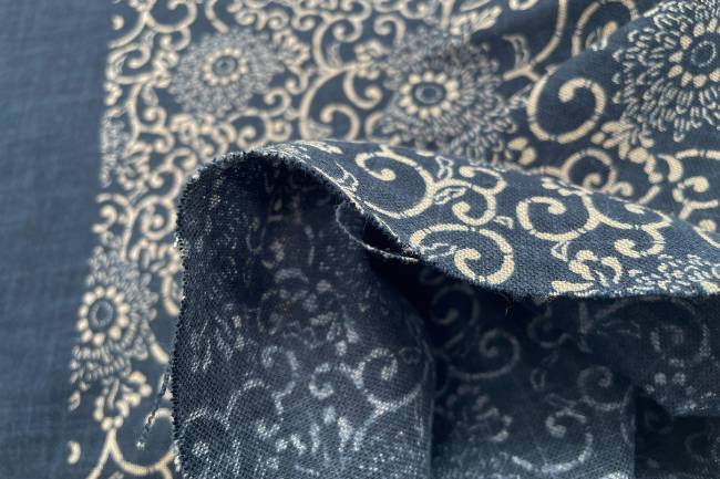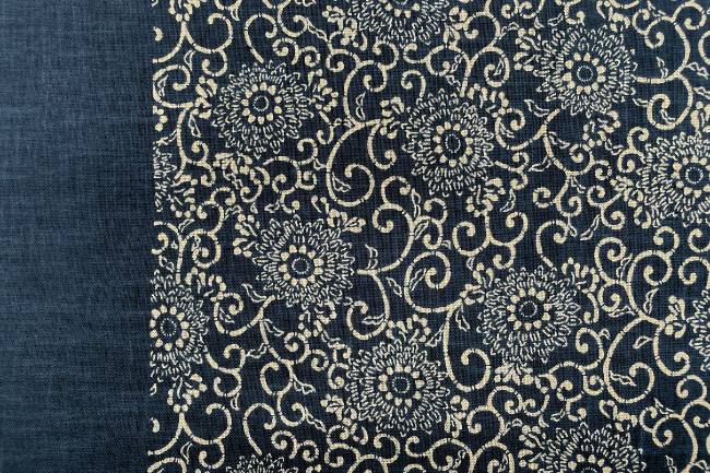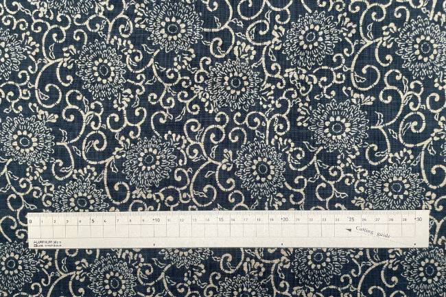 ムラ糸藍染調プリント(菊唐草)[F4-kp7090-5]
