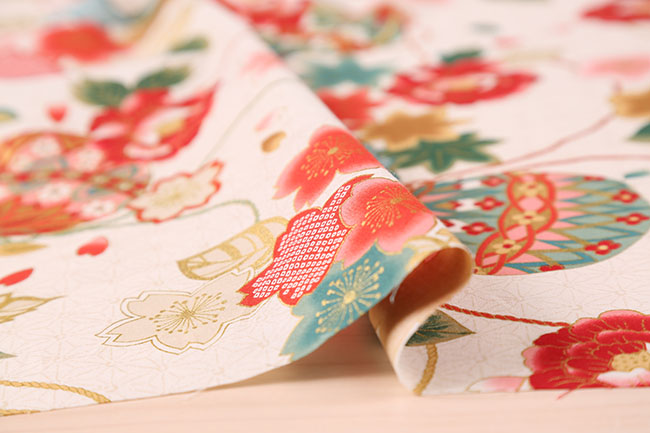 貴族遊びの鞠と桜は、お祝いにふさわしい柄でもあります。