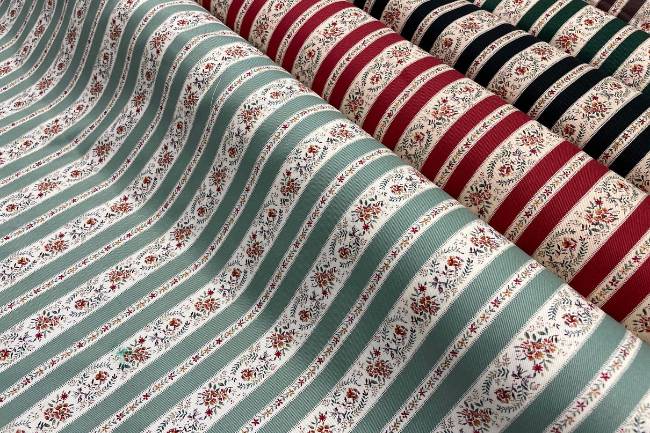 花柄とストライプを組み合わせた素敵な柄の生地です。