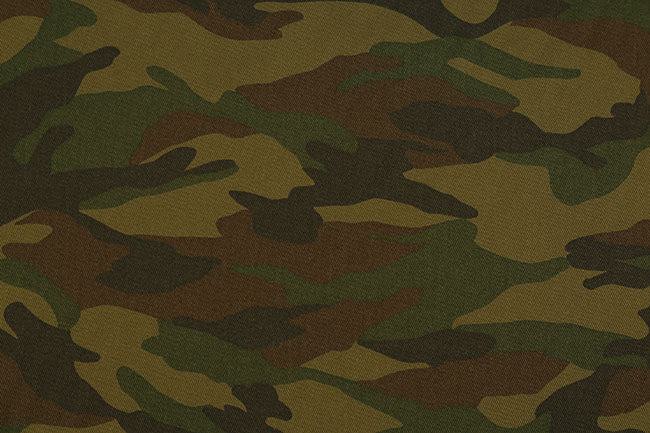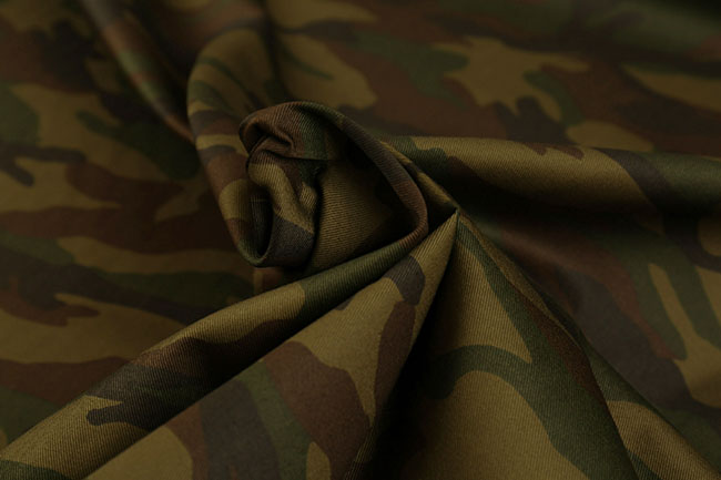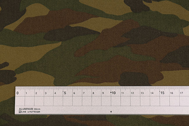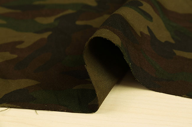 ハリコシのある厚手のツイルに施したカジュアルな迷彩柄。