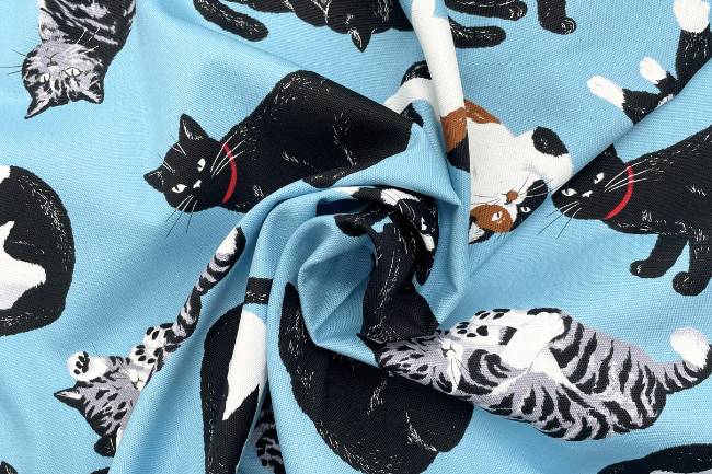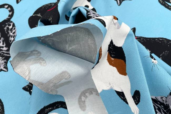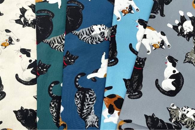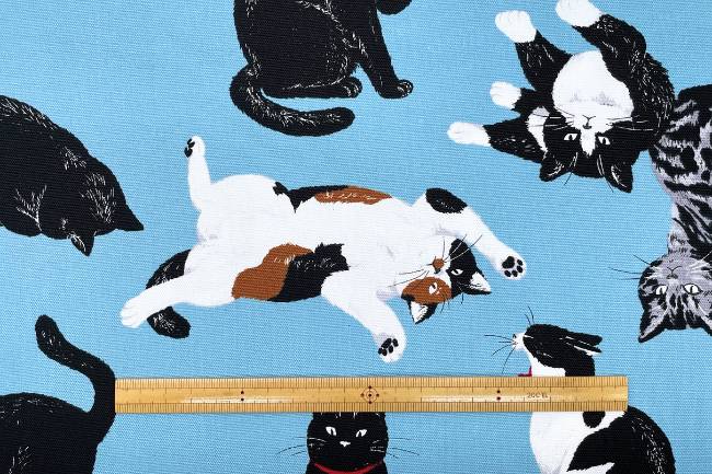 可愛いねこ柄プリントのオックス生地です。