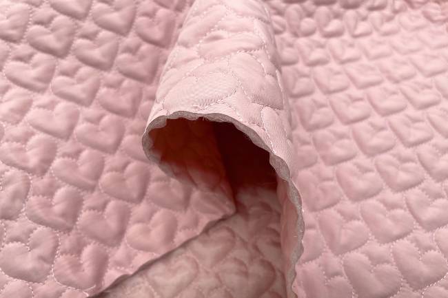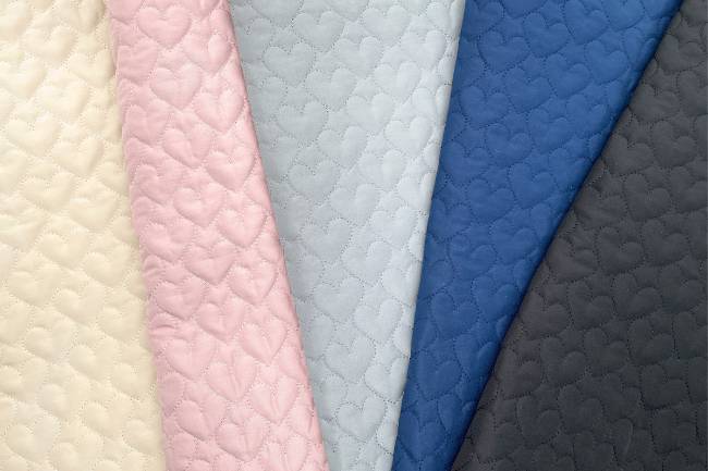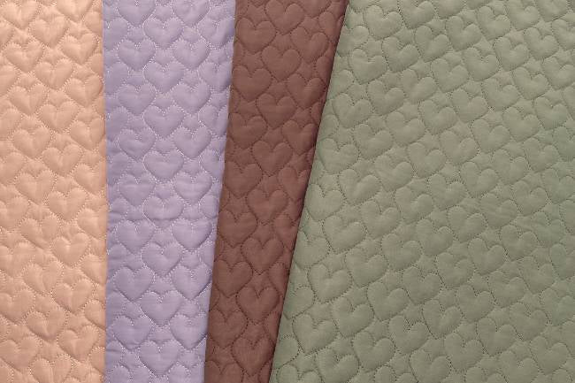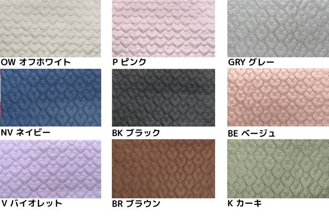 品の良いノーブルカラーにハートのステッチが施された上品で可愛いキルト生地です。