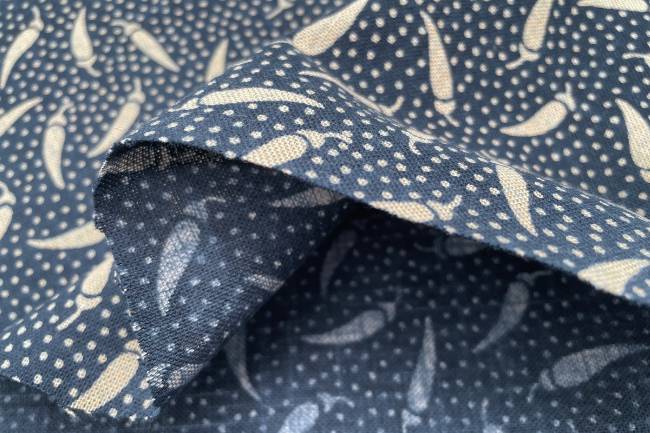 ムラ糸藍染調プリント(唐辛子)[F4-kp7090-74]