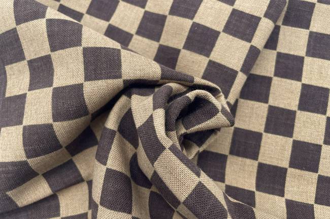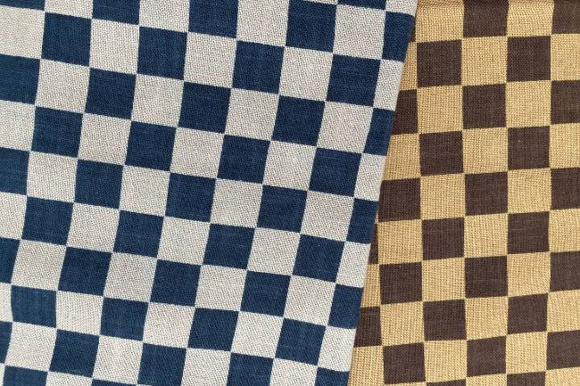 ムラ糸藍染調プリント(市松模様)[F4-kp7090-40]