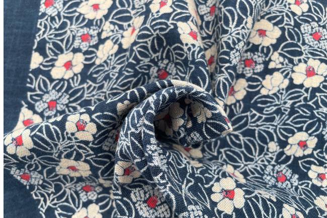 ムラ糸藍染調プリント(椿)[F4-kp7090-55]