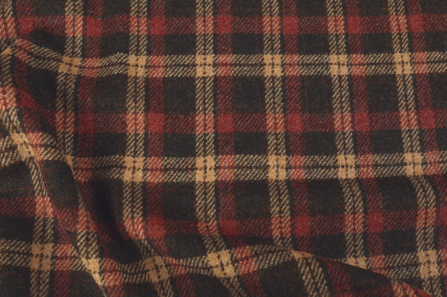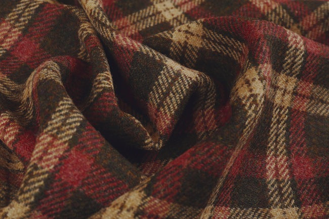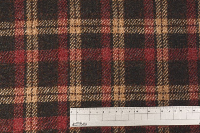 ダークブラウンの地にピンクのラインの暖かみのあるタータンチェックです。