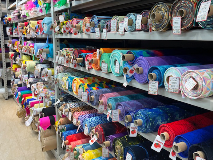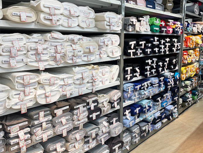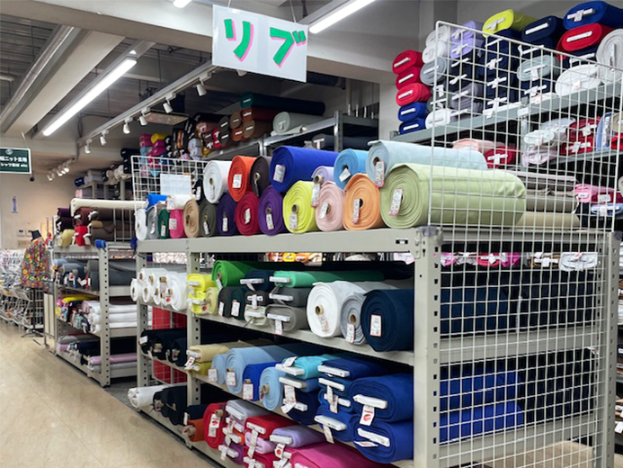 Tシャツ生地・トレーナー生地・水着生地・ニット生地・フェイクファー・合皮などが揃うお店