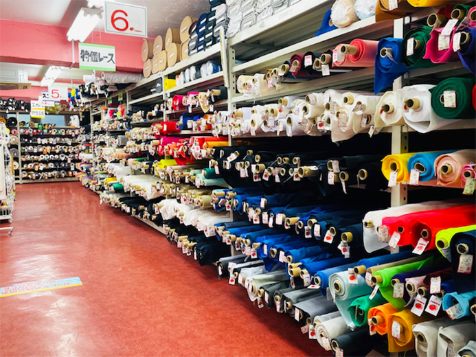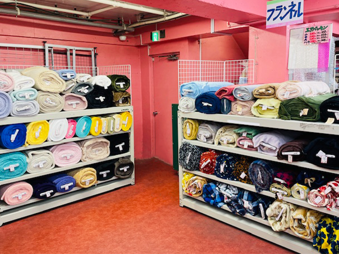 地下にはレースや合皮、ボアなどの特価商品素敵な掘り出し物に出会えるかも!