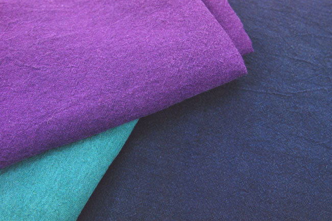 手作業染色・特殊乾燥で仕上げたキャンバス生地です。前処理、染色、仕上げのすべての工程で生地を洗いこむような加工をすることで、天然素材の持つ豊かな表情を引き出しました。