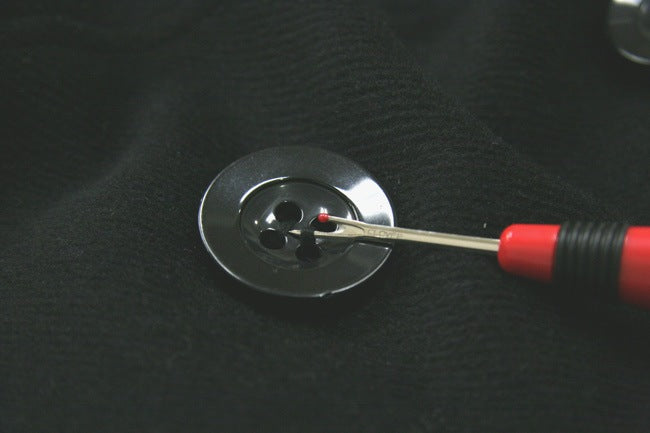 はさみでは切りにくいボタンの糸切り、縫い目、