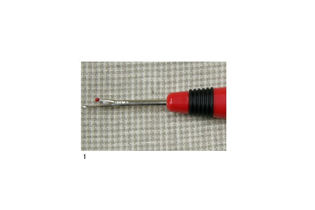 長い方の先を糸の下に差し込み、押すようにして使います。