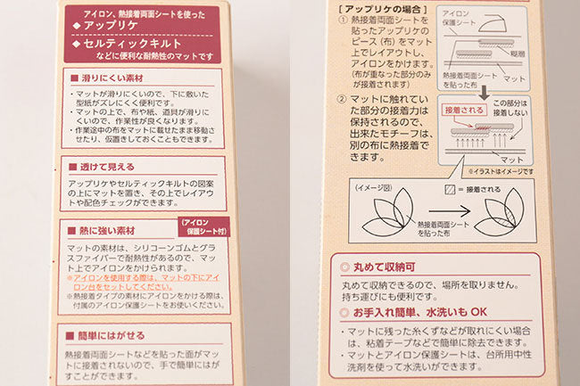 アップリケやセルティックキルトなどにおすすめの耐熱性のマットです。