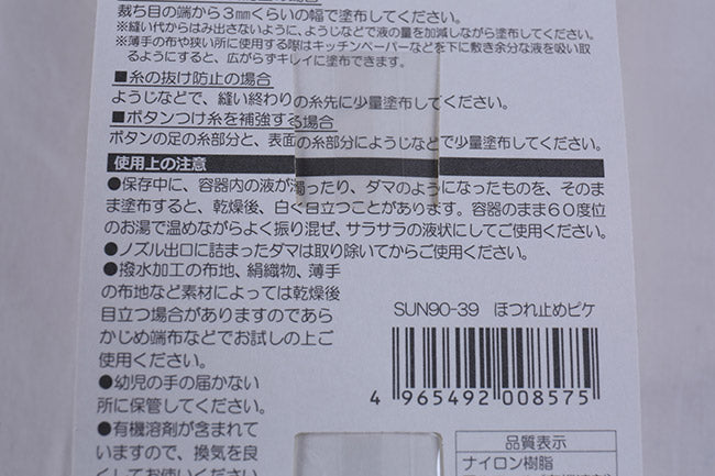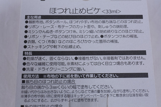 生地端のほつれなどを防止するためのほつれ止め液です。
